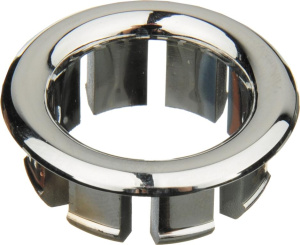 Декоративный элемент с хромированной поверхностью для раковины с переливом.