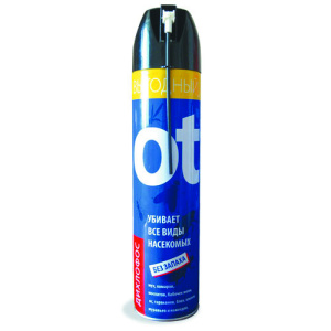Средство инсектицидное для уничтожения в помещениях летающих и нелетающих насекомых: мух, комаров, москитов, бабочек, моли, ос, а также тараканов, блох, клопов, муравьев и кожеедов.