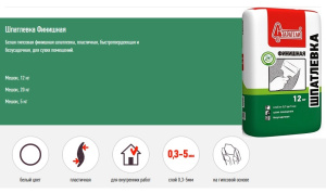 Шпатлёвка гипсовая "Финишная" 12кг. (90шт/подд)