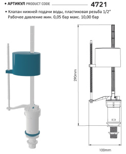 Клапан нижней подачи воды Nova поплавочный (4721)