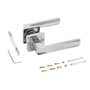 Ручка на квадратной накладке.Материал ручек — алюминиевый сплав, накладки — алюминиевый сплав. Многослойное гальваническое покрытие. Комплектуются винтовыми стяжками и шурупами. Длина разрезного квадрата - 105мм. Для дверей, толщиной 34-45 мм.