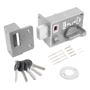Замок накладной цилиндровый с вертушкой. Предназначен для установки на деревянные двери. Комплектация - 5 ключей, запорная планка, накладка. Механизм замка под перфоключ, идет совместно с корпусом. Закрывание и открывание замка изнутри производится вертушкой, снаружи ключом. Имеет возможность ночной фиксации засова изнутри.