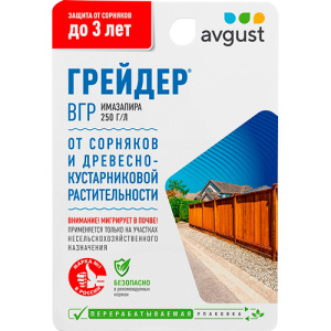 Грейдер - системный гербицид сплошного действия для уничтожения всех видов нежелательной травянистой и древесной растительности. Применяется на землях несельскохозяйственного назначения. Препараты от сорной растительности обладают ограниченным сроком действия. Такие свойства вполне оправданы и необходимы для того, чтобы после очистки территорий была возможность что-то на них посадить. Но бывают ситуации, когда нужно освободить участок под постройку дома или, например, избавиться от сорняков на погосте на длительное время. Здесь на помощь и приходит Грейдер. Он уничтожает все виды нежелательной травянистой и древесно-кустарниковой растительности, ему подвластны даже злостные и карантинные сорняки, в том числе амброзия полыннолистная.