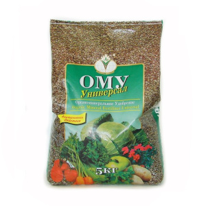 ОМУ «Универсал» содержит в своем составе 40% органического вещества, азот, фосфор, калий, магний и микроэлементы, гуминовые соединения. Для обеспечения увеличения продуктивности культуры и восстановления плодородия почвы, органоминеральное удобрение ОМУ «Универсал» модифицировано микробиологическим препаратом на основе ризосферных бактерий.