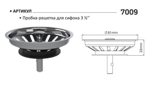 Пробка-выпуск (решетка) для сифона Nova 3 1/2" (7009)