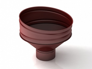 Главное предназначение воронки — сбор, задержка и отвод воды из желоба в водосточную трубу. Крепится воронка круглая напрямую к желобу и к колену водосточной трубы, при этом предотвращается накапливание воды в желобе и её перелив.